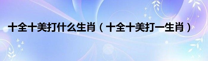 关于十全十美打什么生肖,十全十美打一生肖这个很多人还不知道,今天菲菲来为大家解答以上的问题,现在让我们一起来看看吧!