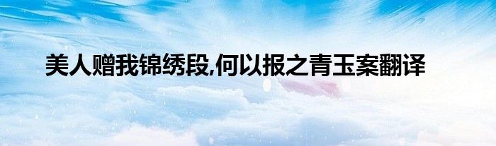 关于美人赠我锦绣段,何以报之青玉案翻译这个很多人还不知道,今天菲菲来为大家解答以上的问题,现在让我们一起来看看吧!