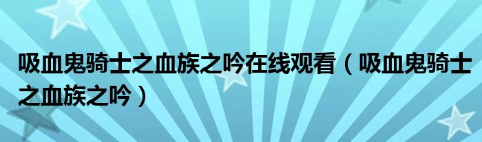 大家好,小晋来为大家解答以下问题,关于吸血鬼骑士之血族之吟在线观看,吸血鬼骑士之血族之吟很多人还不知道,今天让我们一起来看看吧!