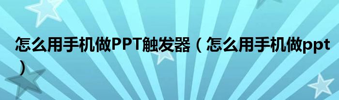 大家好,小晋来为大家解答以下问题,关于怎么用手机做PPT触发器,怎么用手机做ppt很多人还不知道,今天让我们一起来看看吧!