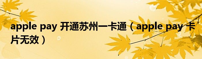 apple pay 开通苏州一卡通,apple pay 卡片无效很多人还不知道,乐乐来为大家解答以上问题,现在让我们一起来看看吧!