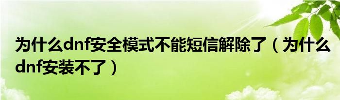 大家好,小飞来为大家解答以上问题,为什么dnf安全模式不能短信解除了,为什么dnf安装不了很多人还不知道,现在让我们一起来看看吧!