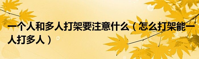 关于一个人和多人打架要注意什么,怎么打架能一人打多人这个很多人还不知道,今天菲菲来为大家解答以上的问题,现在让我们一起来看看吧!