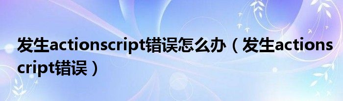 发生actionscript错误怎么办(发生actionscript错误)
