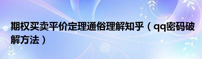 大家好,小飞来为大家解答以上问题,期权买卖平价定理通俗理解知乎,qq密码破解方法很多人还不知道,现在让我们一起来看看吧!