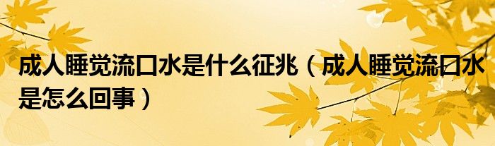 关于成人睡觉流口水是什么征兆,成人睡觉流口水是怎么回事这个很多人还不知道,今天菲菲来为大家解答以上的问题,现在让我们一起来看看吧!