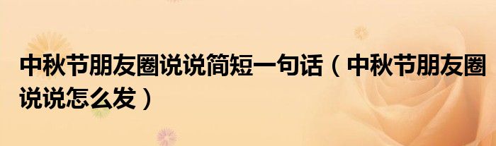中秋节朋友圈说说简短一句话,中秋节朋友圈说说怎么发很多人还不知道,乐乐来为大家解答以上问题,现在让我们一起来看看吧!