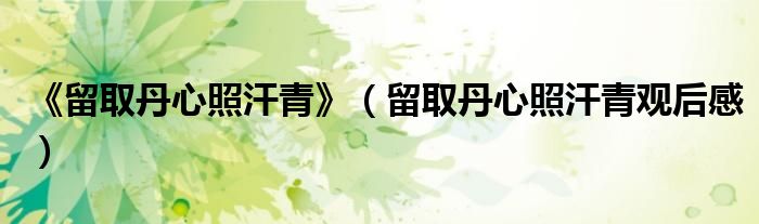 关于《留取丹心照汗青》,留取丹心照汗青观后感这个很多人还不知道,今天菲菲来为大家解答以上的问题,现在让我们一起来看看吧!