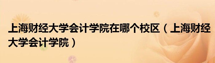 上海财经大学会计学院在哪个校区(上海财经大学会计学院)