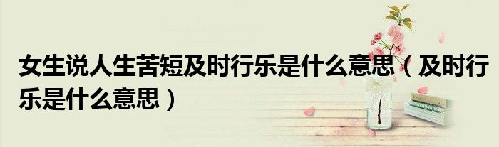 关于女生说人生苦短及时行乐是什么意思,及时行乐是什么意思这个很多人还不知道,今天菲菲来为大家解答以上的问题,现在让我们一起来看看吧!