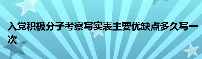 关于入党积极分子考察写实表主要优缺点多久写一次这个很多人还不知道,今天菲菲来为大家解答以上的问题,现在让我们一起来看看吧!
