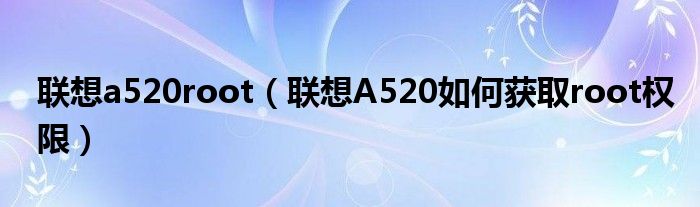 3,联想A520 怎么获得root权限我要删除手机自带软件高分:对于android 2.3 系统,用A60tools (下载后解压缩到电脑上,在电脑上运行)和豌豆荚(用来连接手机和电脑)两个软件,可以获取A520ROOT ;具体方法,请参考A60 或 P70 获取root的方式。网上有教程(我自己就发布过相关教程),你自己搜索一下。