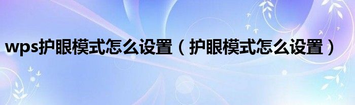 wps护眼模式怎么设置(护眼模式怎么设置)