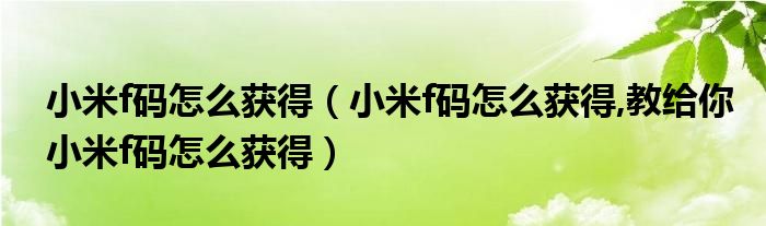 小米f码怎么获得(小米f码怎么获得,教给你小米f码怎么获得)