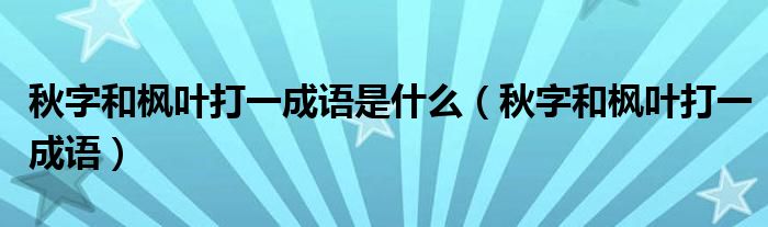 大家好,小晋来为大家解答以下问题,关于秋字和枫叶打一成语是什么,秋字和枫叶打一成语很多人还不知道,今天让我们一起来看看吧!