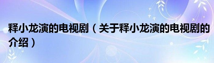 大家好,今天小乐来为大家解答以上的问题。释小龙演的电视剧,关于释小龙演的电视剧的介绍很多人还不知道,现在让我们一起来看看吧!