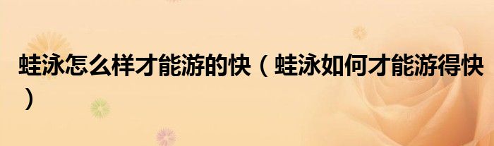 关于蛙泳怎么样才能游的快,蛙泳如何才能游得快这个很多人还不知道,今天菲菲来为大家解答以上的问题,现在让我们一起来看看吧!