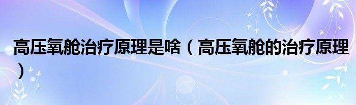 关于高压氧舱治疗原理是啥,高压氧舱的治疗原理这个很多人还不知道,今天菲菲来为大家解答以上的问题,现在让我们一起来看看吧!