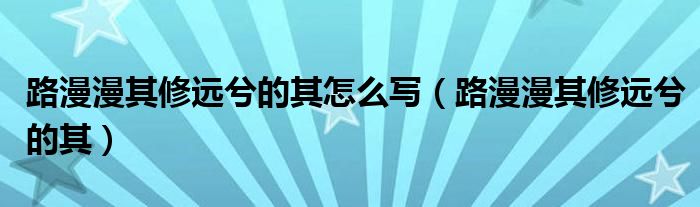 关于路漫漫其修远兮的其怎么写,路漫漫其修远兮的其这个很多人还不知道,今天菲菲来为大家解答以上的问题,现在让我们一起来看看吧!