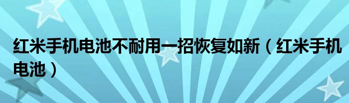 大家好,雨雨来为大家解答以上问题,红米手机电池不耐用一招恢复如新,红米手机电池很多人还不知道,现在让我们一起来看看吧!