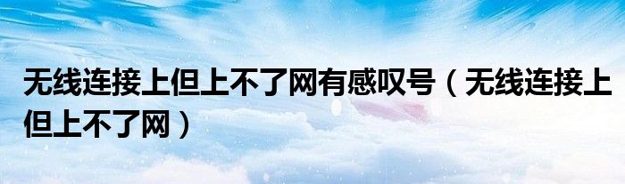 大家好,雨雨来为大家解答以上问题,无线连接上但上不了网有感叹号,无线连接上但上不了网很多人还不知道,现在让我们一起来看看吧!