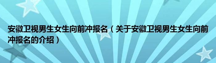 安徽卫视男生女生向前冲报名(关于安徽卫视男生女生向前冲报名的介绍)