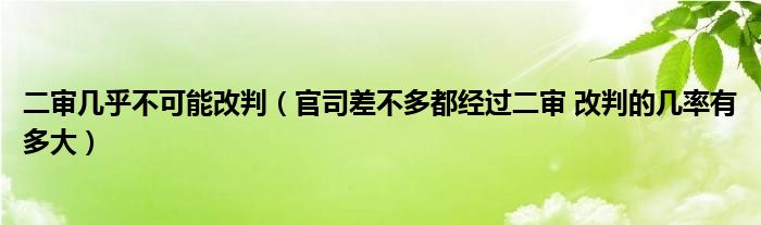 关于二审几乎不可能改判,官司差不多都经过二审 改判的几率有多大这个很多人还不知道,今天菲菲来为大家解答以上的问题,现在让我们一起来看看吧!