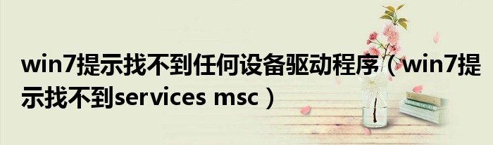 关于win7提示找不到任何设备驱动程序,win7提示找不到services msc这个很多人还不知道,今天菲菲来为大家解答以上的问题,现在让我们一起来看看吧!