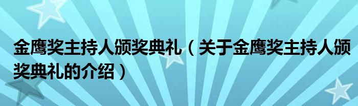 大家好,今天小乐来为大家解答以上的问题。金鹰奖主持人颁奖典礼,关于金鹰奖主持人颁奖典礼的介绍很多人还不知道,现在让我们一起来看看吧!