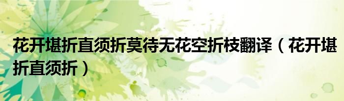 关于花开堪折直须折莫待无花空折枝翻译,花开堪折直须折这个很多人还不知道,今天菲菲来为大家解答以上的问题,现在让我们一起来看看吧!