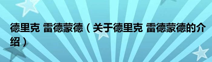 大家好,今天小乐来为大家解答以上的问题。德里克 雷德蒙德,关于德里克 雷德蒙德的介绍很多人还不知道,现在让我们一起来看看吧!