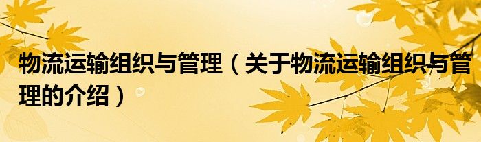 物流运输组织与管理(关于物流运输组织与管理的介绍)