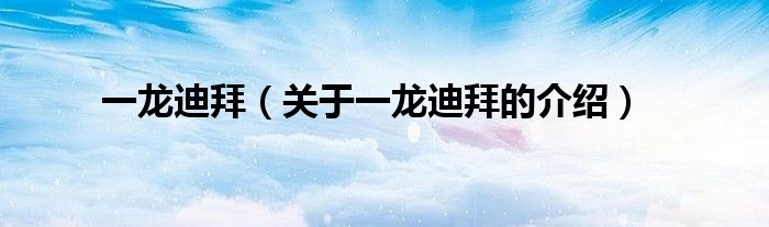 大家好,今天小乐来为大家解答以上的问题。一龙迪拜,关于一龙迪拜的介绍很多人还不知道,现在让我们一起来看看吧!