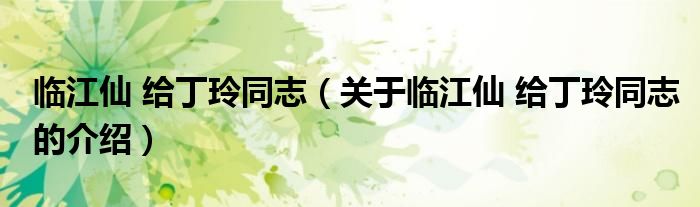 大家好,今天小乐来为大家解答以上的问题。临江仙 给丁玲同志,关于临江仙 给丁玲同志的介绍很多人还不知道,现在让我们一起来看看吧!
