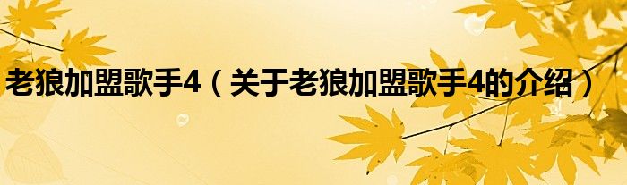 大家好,今天小乐来为大家解答以上的问题。老狼加盟歌手4,关于老狼加盟歌手4的介绍很多人还不知道,现在让我们一起来看看吧!