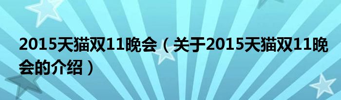大家好,今天小乐来为大家解答以上的问题。2015天猫双11晚会,关于2015天猫双11晚会的介绍很多人还不知道,现在让我们一起来看看吧!