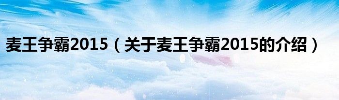 大家好,今天小乐来为大家解答以上的问题。麦王争霸2015,关于麦王争霸2015的介绍很多人还不知道,现在让我们一起来看看吧!