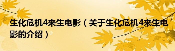 大家好,今天小乐来为大家解答以上的问题。生化危机4来生电影,关于生化危机4来生电影的介绍很多人还不知道,现在让我们一起来看看吧!