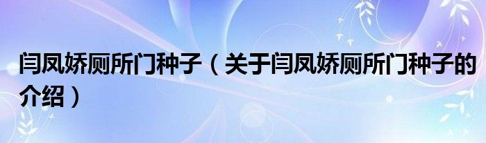 闫凤娇厕所门种子(关于闫凤娇厕所门种子的介绍)