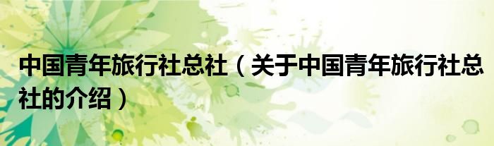 中国青年旅行社总社(关于中国青年旅行社总社的介绍)