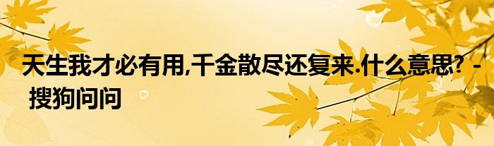 关于天生我才必有用,千金散尽还复来.什么意思? - 搜狗问问这个很多人还不知道,今天菲菲来为大家解答以上的问题,现在让我们一起来看看吧!