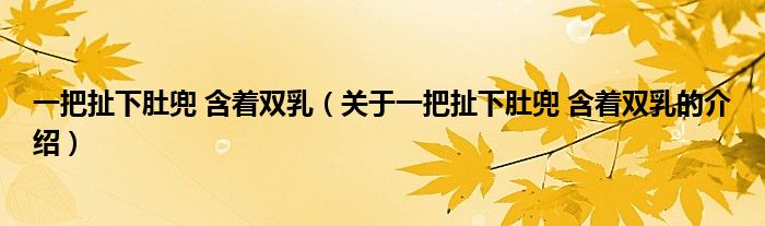 大家好,小都来为大家解答以上的问题。一把扯下肚兜 含着双乳,关于一把扯下肚兜 含着双乳的介绍很多人还不知道,现在让我们一起来看看吧!