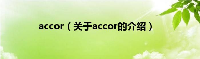 大家好,小都来为大家解答以上的问题。accor,关于accor的介绍很多人还不知道,现在让我们一起来看看吧!