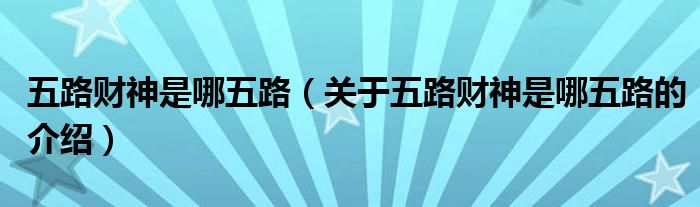 大家好,小都来为大家解答以上的问题。五路财神是哪五路,关于五路财神是哪五路的介绍很多人还不知道,现在让我们一起来看看吧!