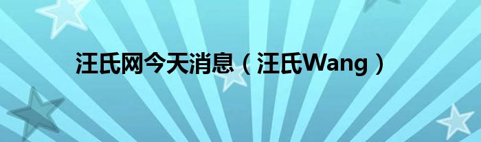 大家好,小源来为大家解答以上问题。汪氏网今天消息,汪氏Wang很多人还不知道,现在让我们一起来看看吧!