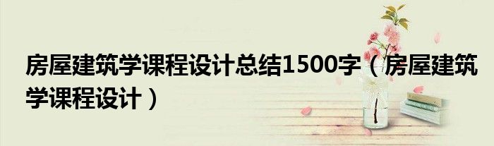 房屋建筑学课程设计总结1500字,房屋建筑学课程设计这个很多人还不知道,小飞来为大家解答以上的问题。现在让我们一起来看看吧!