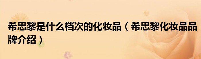 大家好,小源来为大家解答以上问题。希思黎是什么档次的化妆品,希思黎化妆品品牌介绍很多人还不知道,现在让我们一起来看看吧!