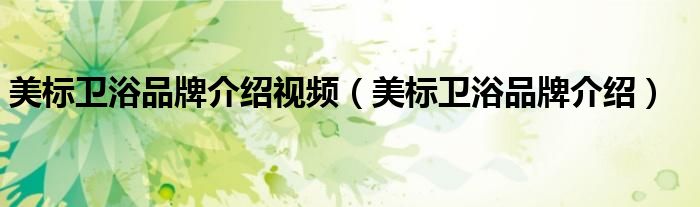 大家好,小源来为大家解答以上问题。美标卫浴品牌介绍视频,美标卫浴品牌介绍很多人还不知道,现在让我们一起来看看吧!