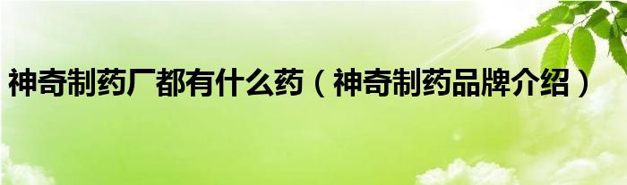 大家好,小源来为大家解答以上问题。神奇制药厂都有什么药,神奇制药品牌介绍很多人还不知道,现在让我们一起来看看吧!