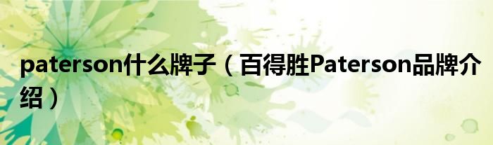 大家好,小源来为大家解答以上问题。paterson什么牌子,百得胜Paterson品牌介绍很多人还不知道,现在让我们一起来看看吧!